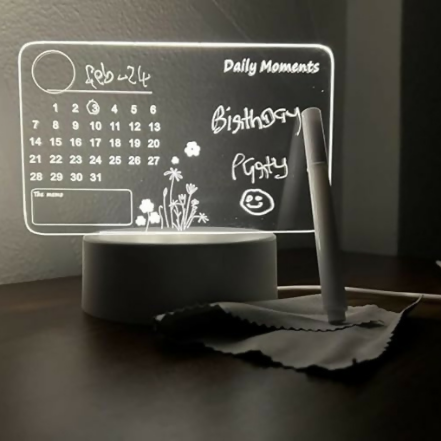 3D LED Acrylic Writing Board with Calendar Design | Reusable Message Lamp with Erasable Pen & USB Cable | Custom Note Night Light for Study Table, Office Desk & Gift for Birthday, Valentine, Anniversary