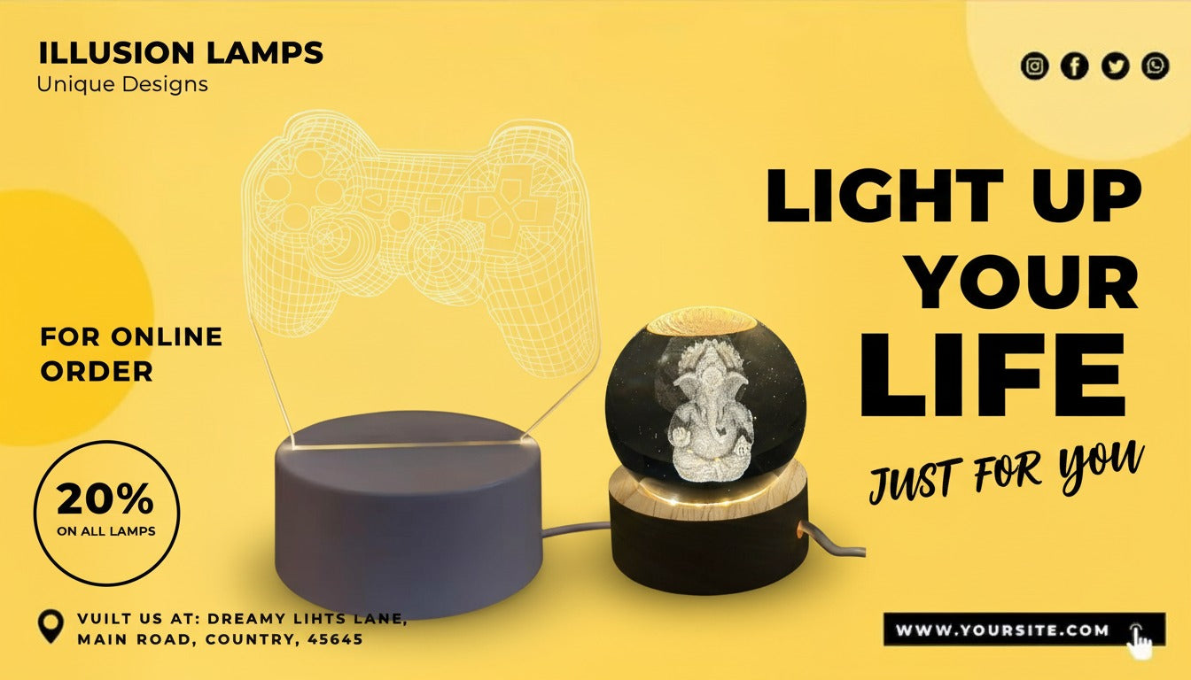 3D Crystal Glass Shiva Sculpture LED Night Lamp with Wooden Base